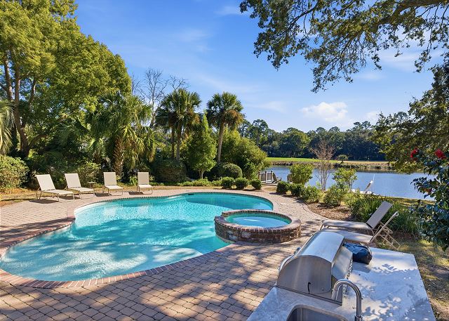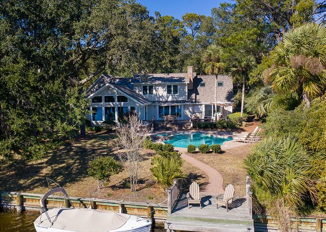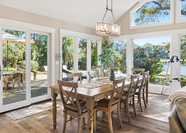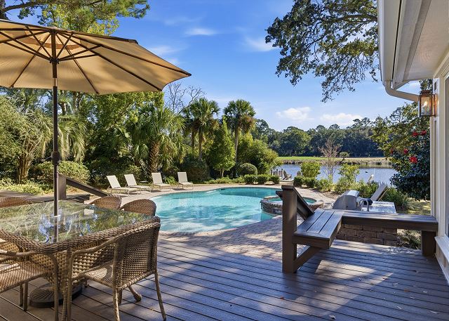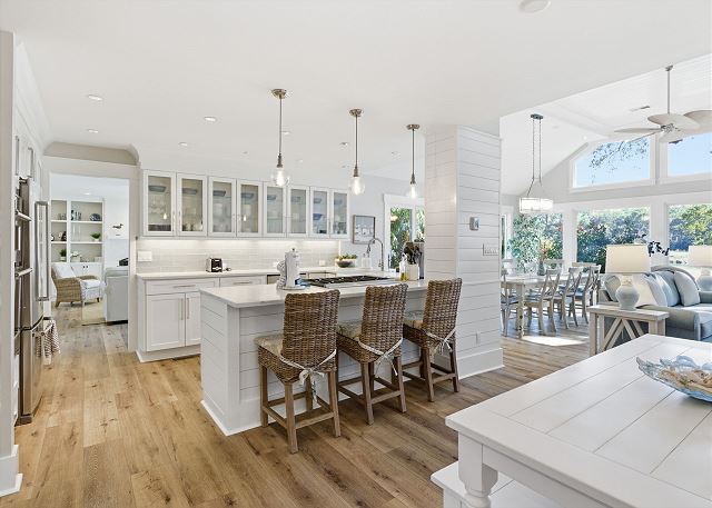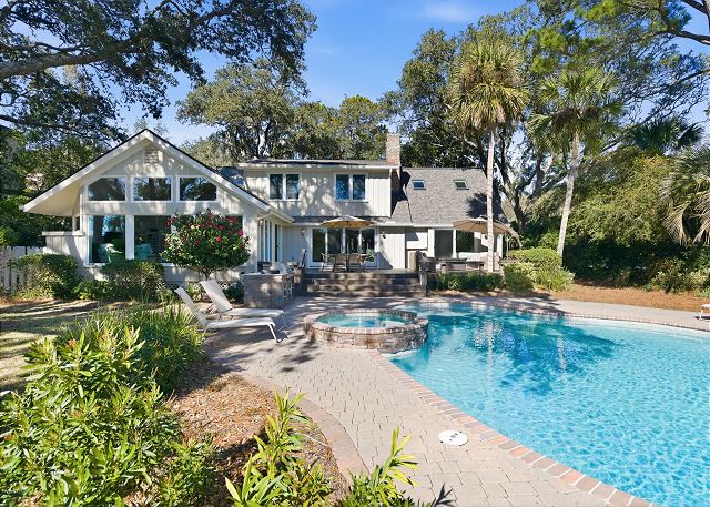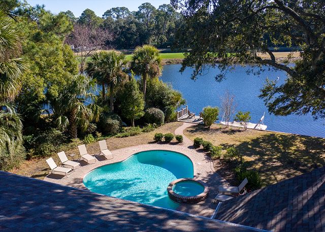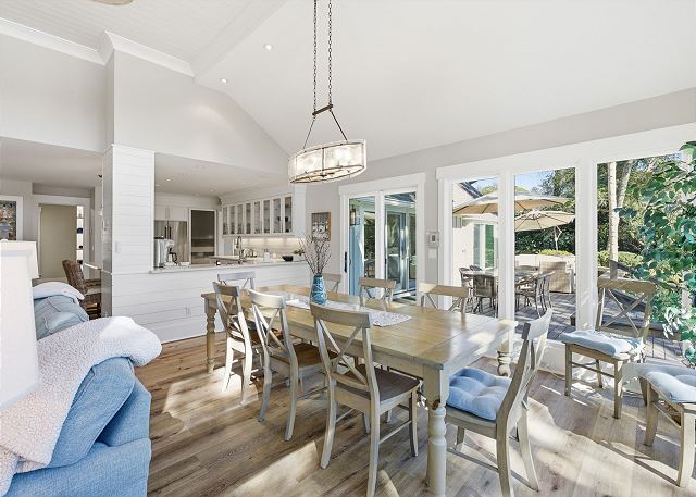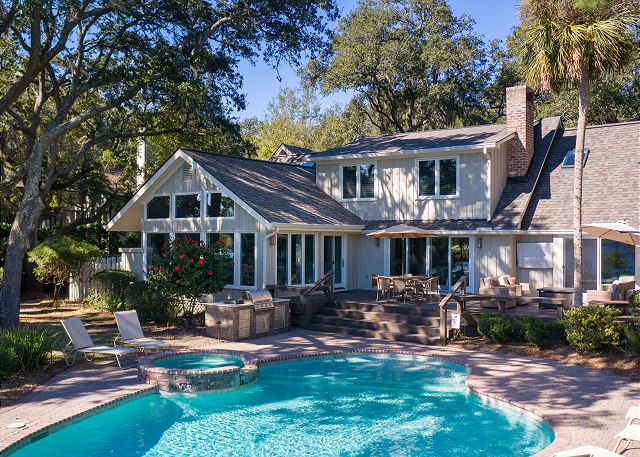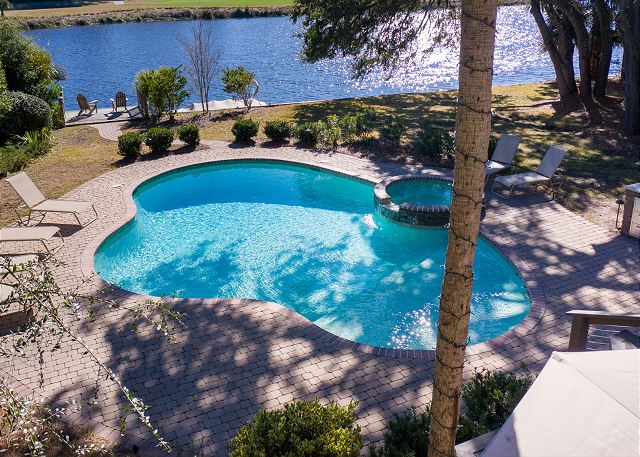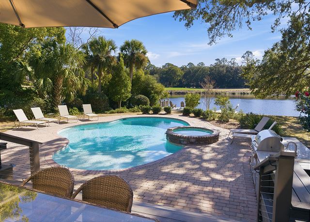 We stayed at this amazing home and absolutely loved every moment! The house is light filled and spacious with a very open concept. The setting is one of the best in Palmetto Dunes I think because of the setting on the wide part of the lagoon, and the golf fairway across the water gives you green views and also great bird watching. The home is very tastefully updated and furnished, all seems to be brand new! The white kitchen is open to the large living and dining room with huge windows and high ceilings, all with great views. The other smaller family room gives some separation for playing games of for kids to hang out, all with the same great views of the beautiful pool and water. The pool is awesome with a nice large shallow area for toddlers or sunbathing. The hot tub was a real plus too on a cooler evening. There are two nice master suites, one on the first floor and one up, so great for two families. It is only a short bike ride or walk to the huge beach nearby, and lots of great places to Kayak too. We will definitely come back to this same house again!- Alison H from Ann Arbor, MI, Posted: 04/15/2021