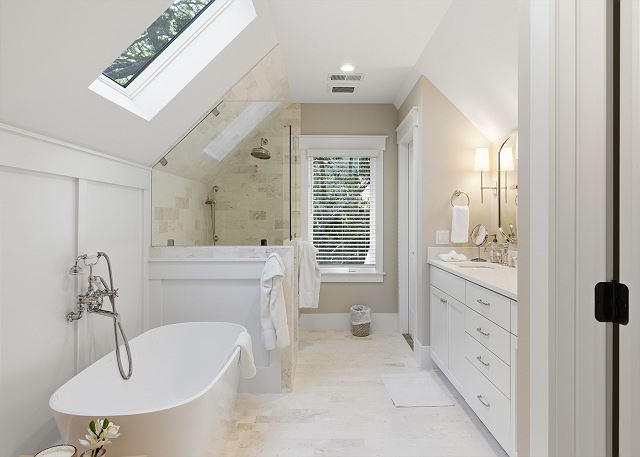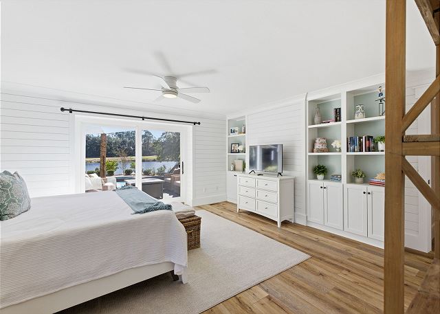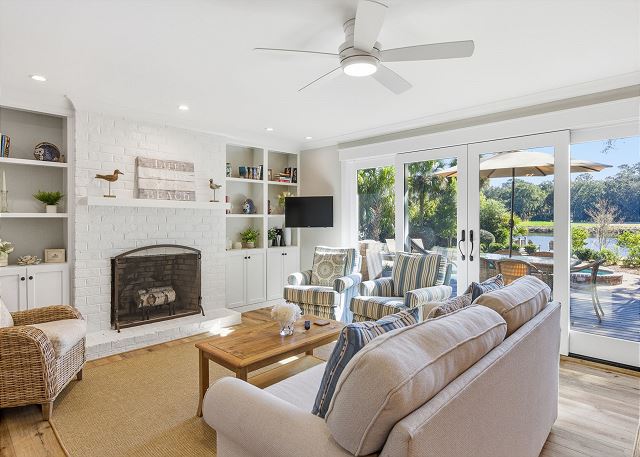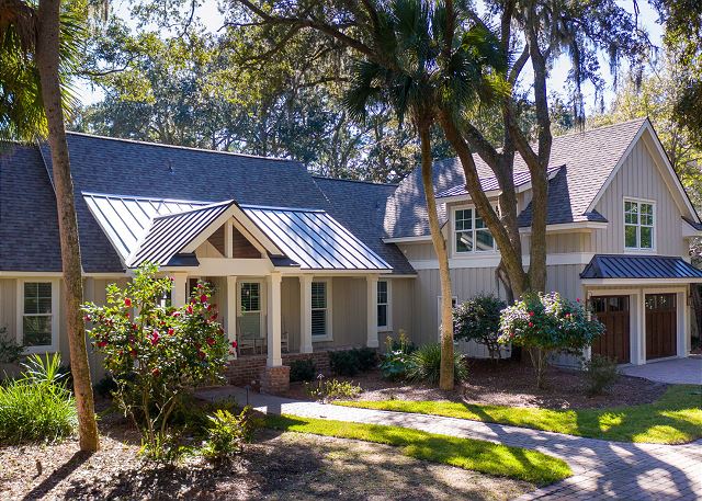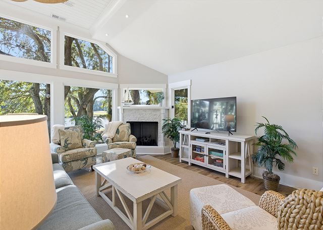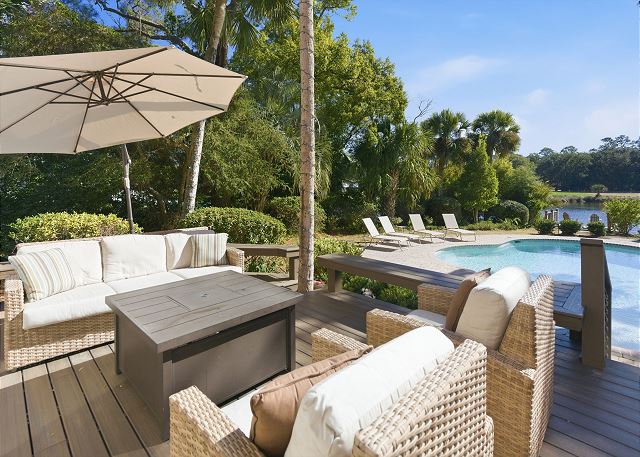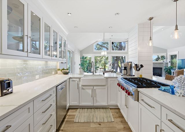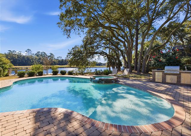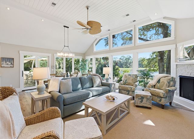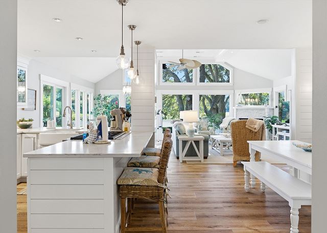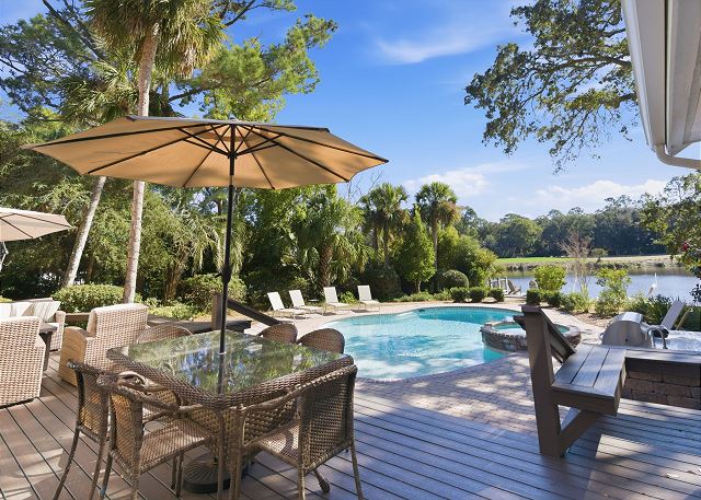 We stayed at this amazing home and absolutely loved every moment! The house is light filled and spacious with a very open concept. The setting is one of the best in Palmetto Dunes I think because of the setting on the wide part of the lagoon, and the golf fairway across the water gives you green views and also great bird watching. The home is very tastefully updated and furnished, all seems to be brand new! The white kitchen is open to the large living and dining room with huge windows and high ceilings, all with great views. The other smaller family room gives some separation for playing games of for kids to hang out, all with the same great views of the beautiful pool and water. The pool is awesome with a nice large shallow area for toddlers or sunbathing. The hot tub was a real plus too on a cooler evening. There are two nice master suites, one on the first floor and one up, so great for two families. It is only a short bike ride or walk to the huge beach nearby, and lots of great places to Kayak too. We will definitely come back to this same house again!- Alison H from Ann Arbor, MI, Posted: 04/15/2021
